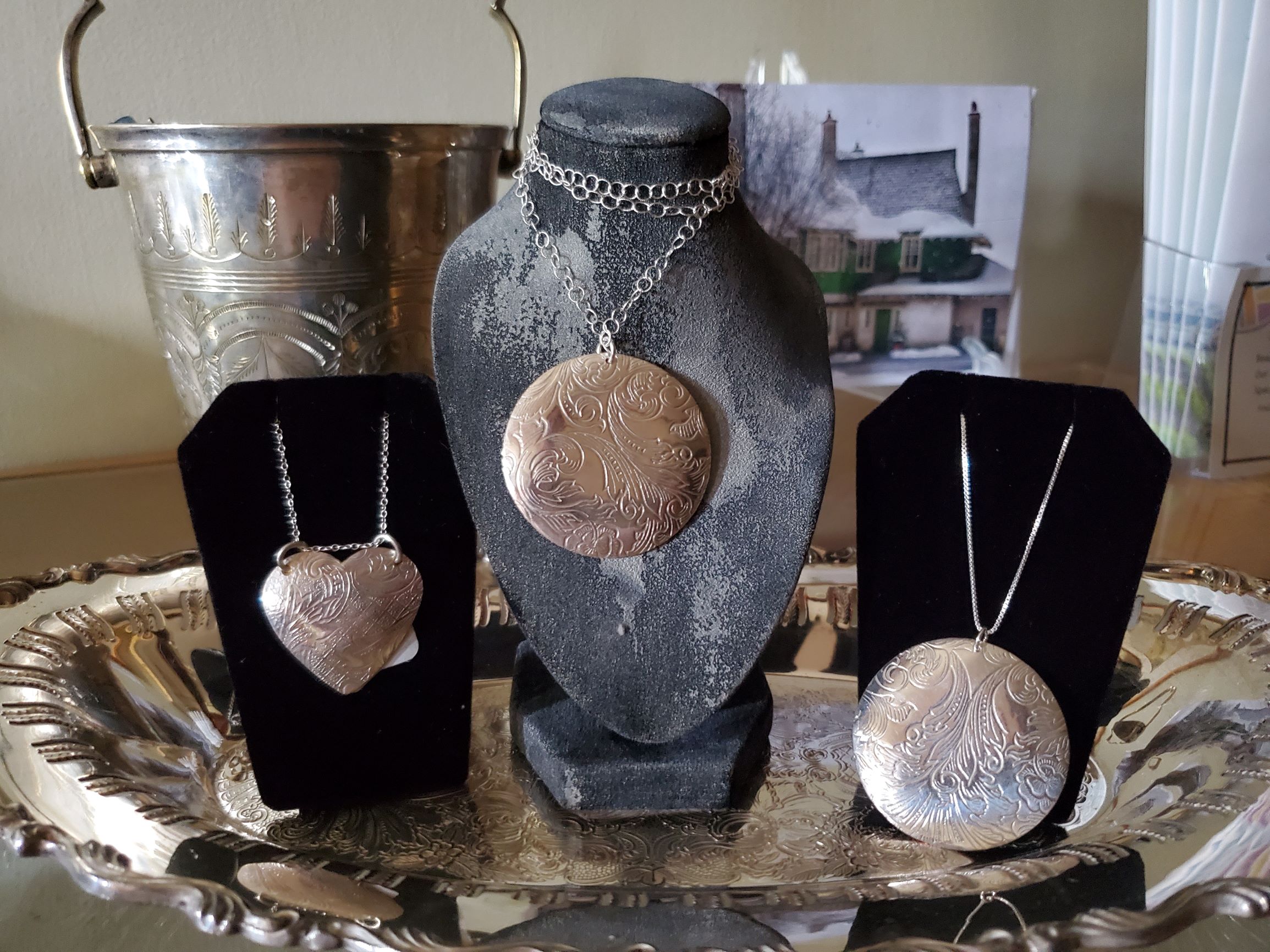 - Vintage trays made into silver necklaces by Ethan Taylor Designs